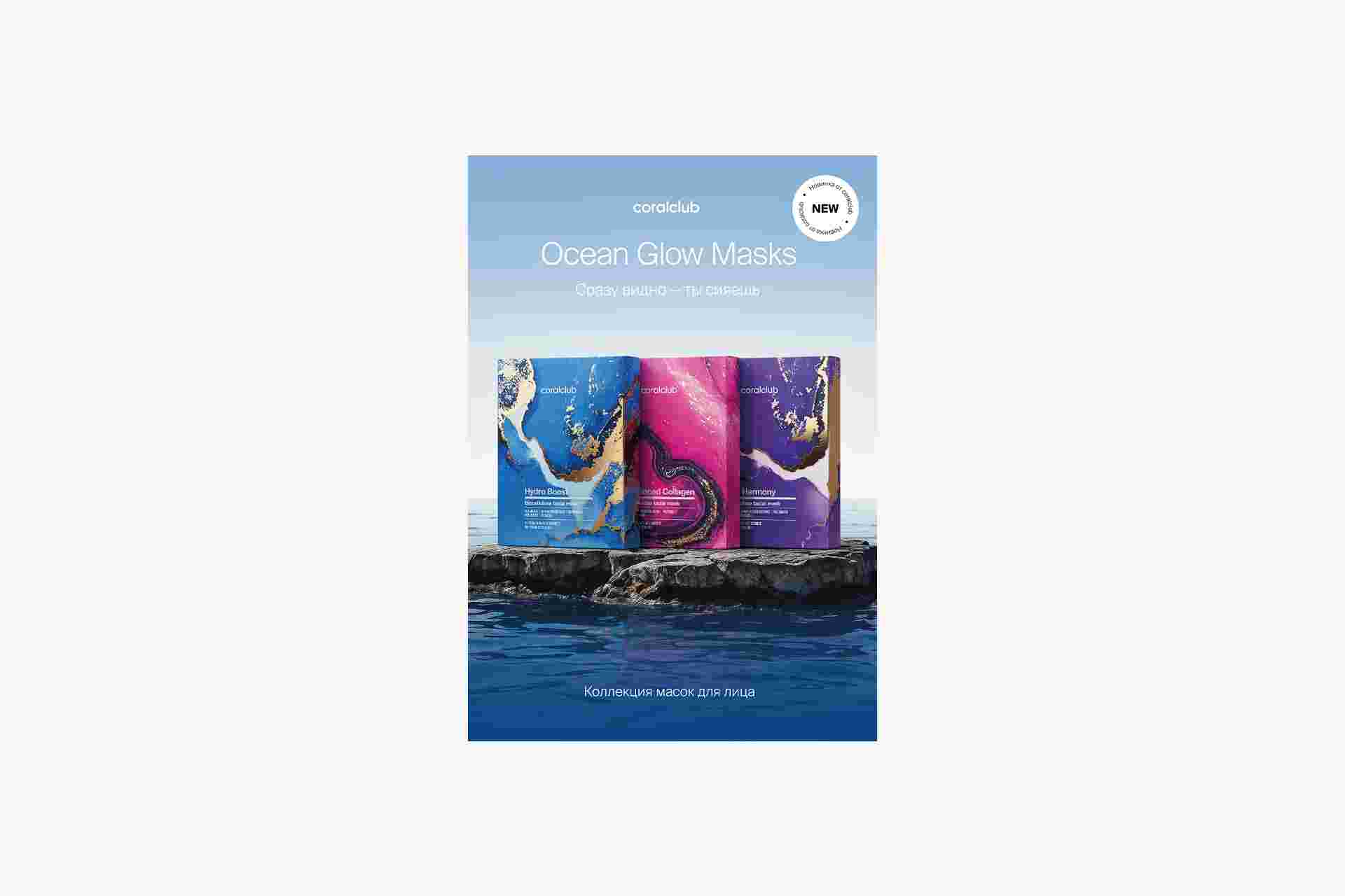 Информационный набор о премиальной линии биоцеллюлозных масок Ocean Glow.